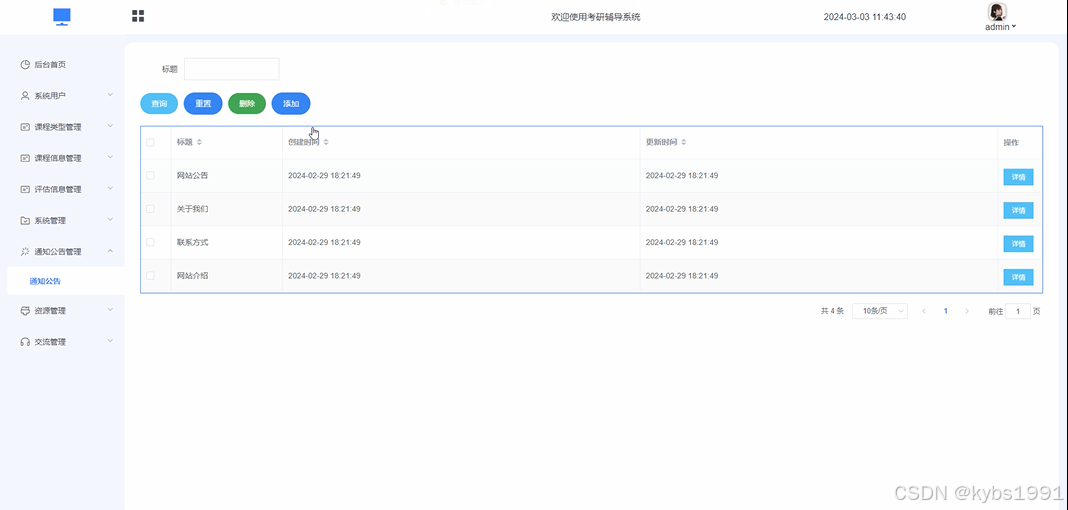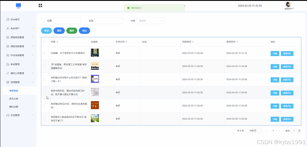 资源管理: 管理系统的学习资源,包括考研资讯、模拟试题等。