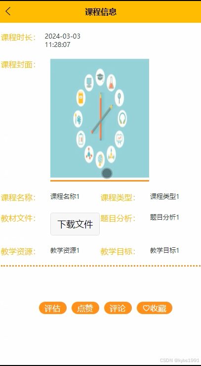 用户点击课程信息可以查看相关的考研课程详情信息,可以下载教材文件,还可以点赞、收藏、评论、评估等。如下图4-5所示。