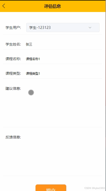 用户在课程信息详情页面点击“评估”可以进入评估信息提交页面,学生用户可以对相关课程进行建议和反馈。评估信息界面如下图4-6所示。