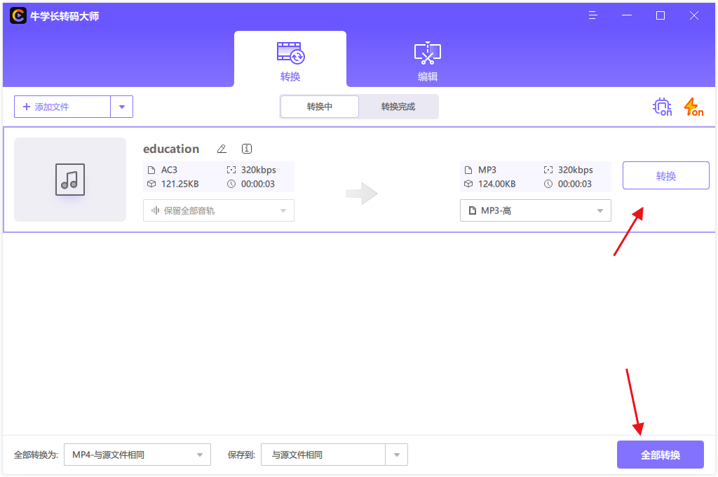 很多人说用音频编辑软件就能完成格式转换,但是这个方法实现不了批量转换问题,否则一个一个文件进行转换,那得多浪费时间呀,使用牛学长转码大师即可一键批量转换所有的音频格式,方便又节约时间!