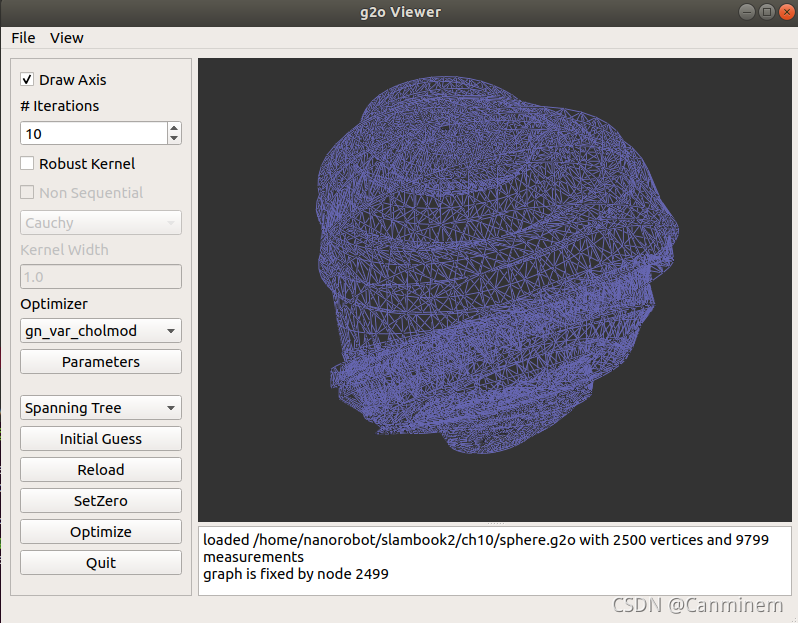 并且点击可视化界面file->load,把“sphere.g2o”文件加载,结果如下图: