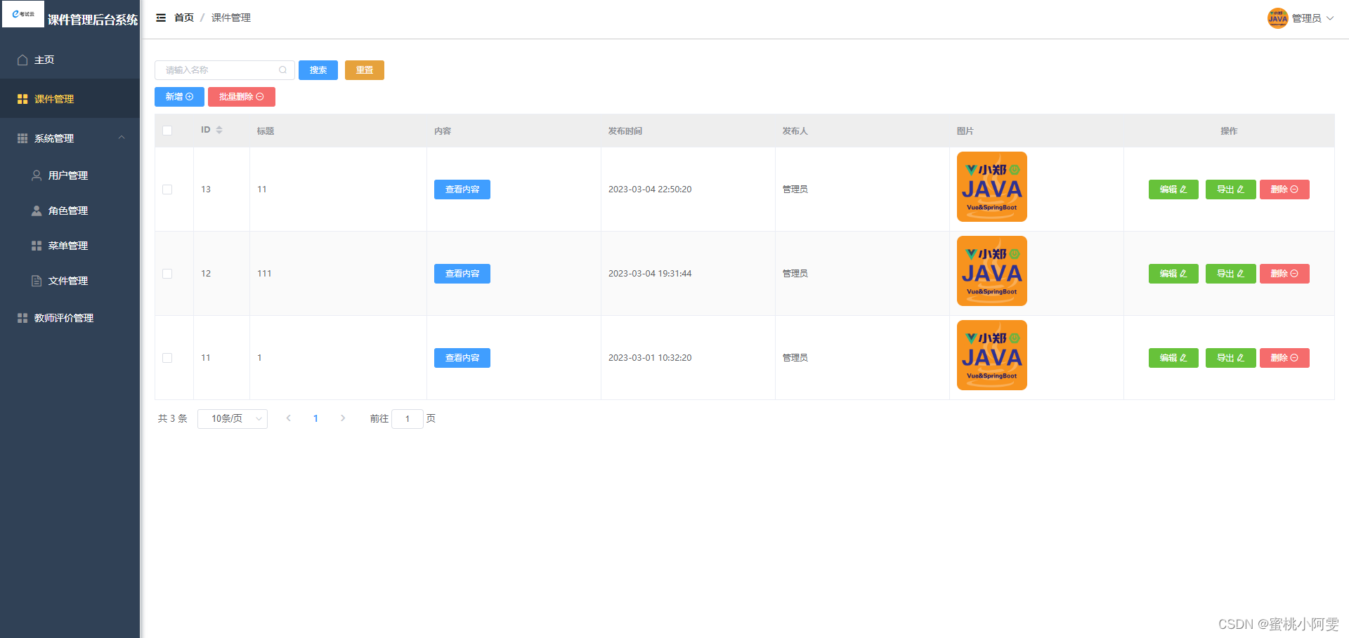 【开源】课程管理平台 JAVA+Vue.js+SpringBoot+MySQL