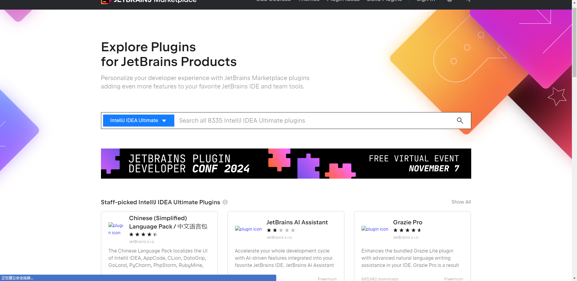 此时就可以在插件市场进行安装插件了,或者直接在官网插件市场安装插件;