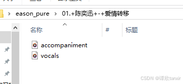 处理完之后会得到一个文件夹,文件夹包含两个音频文件。一个音频文件表示伴奏,一个表示人声(vocals)。