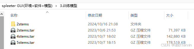 另外,分离背景音乐与人声需要用到该工具下的双声道模型。即下图中的2stems。将压缩包解压后将其中的模型复制到SpleeterGUI文件夹中的pretrained_models文件夹中(见上图)。