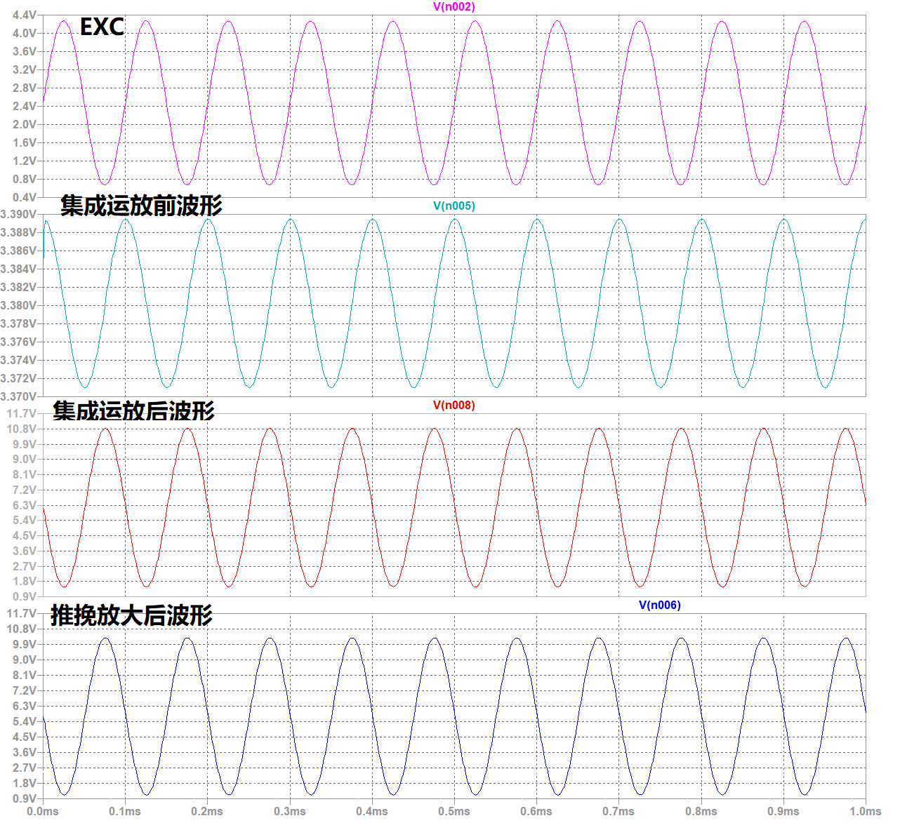 EXC输出波形集成运放后波形推挽放大 后波形。