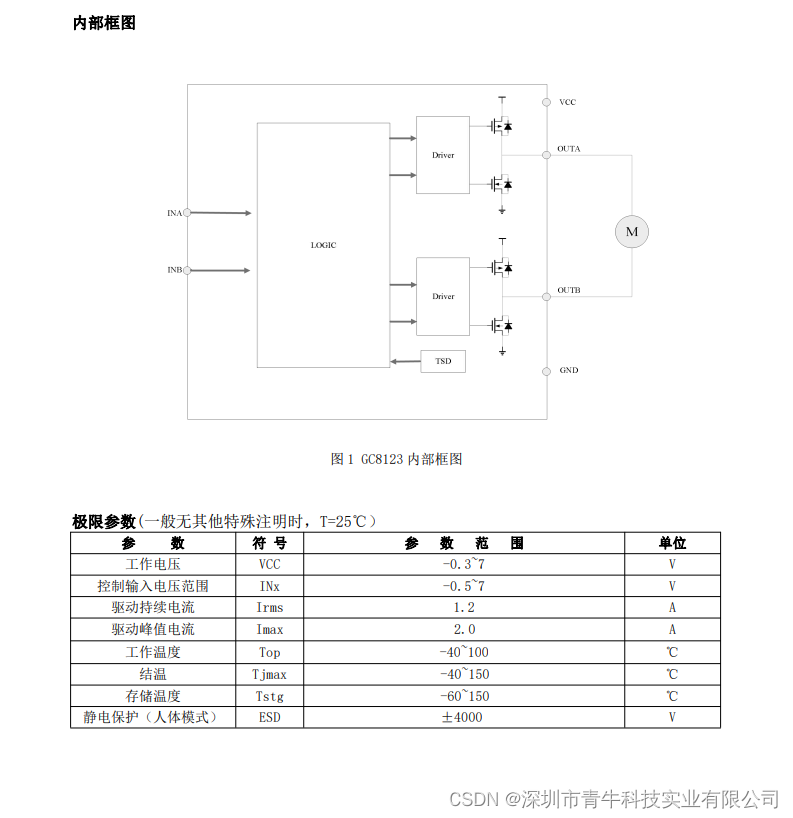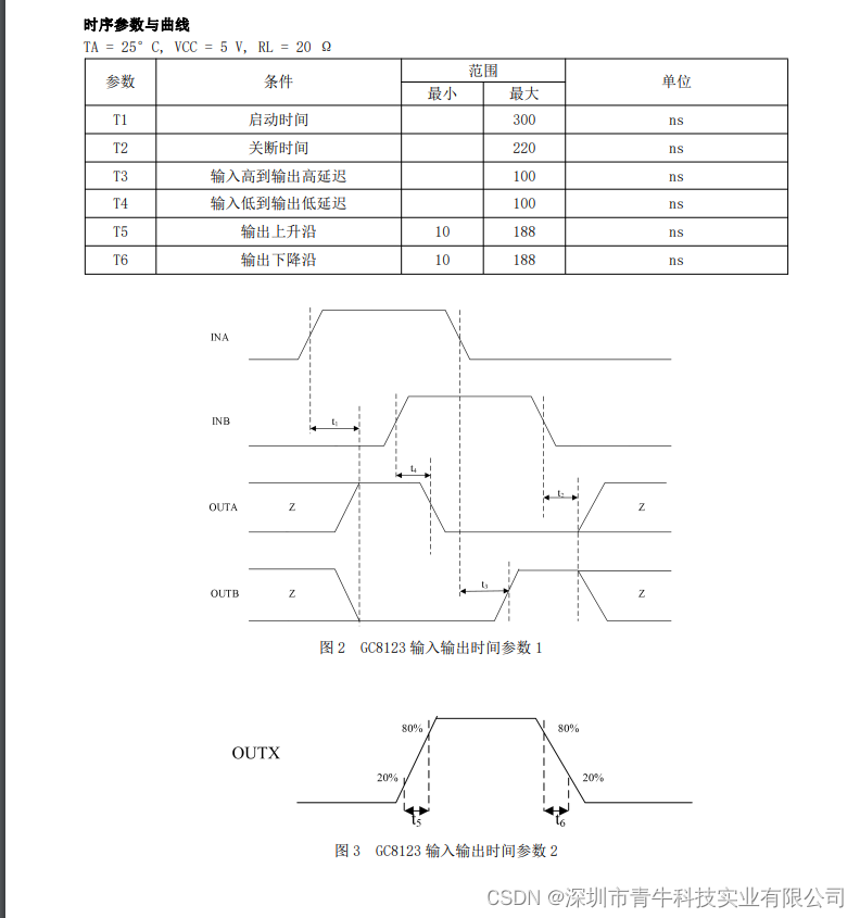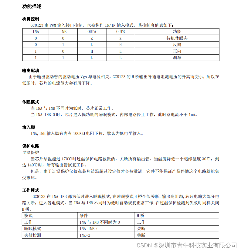 GC8123具有 PWM(IN/IN)输入接口,与行业标准 器件兼容,并具有过温保护功能。