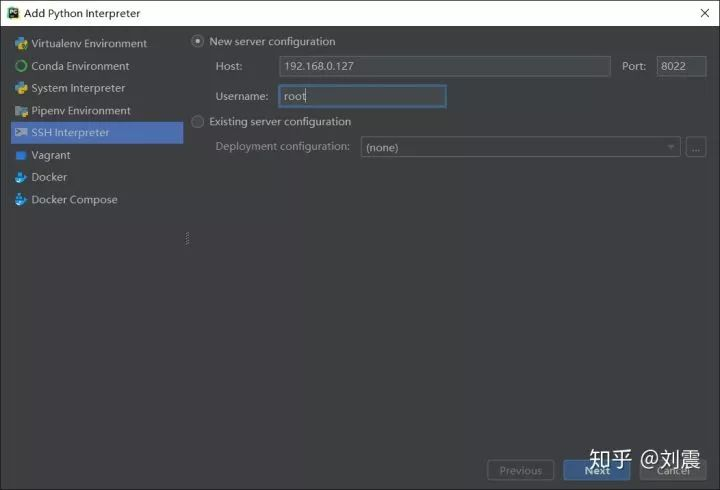 打开PyCharmTools > Deployment > Configuration, 新建一个SFTP服务器,名字自己取: