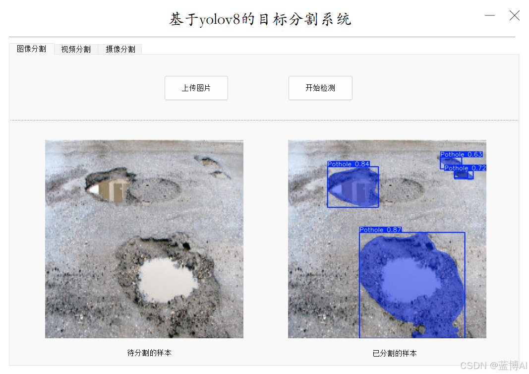 基于yolov8的马路坑洼检测分割系统,支持图像、视频和摄像实时检测分割【python源码、pytorch框架】_哔哩哔哩_bilibili
