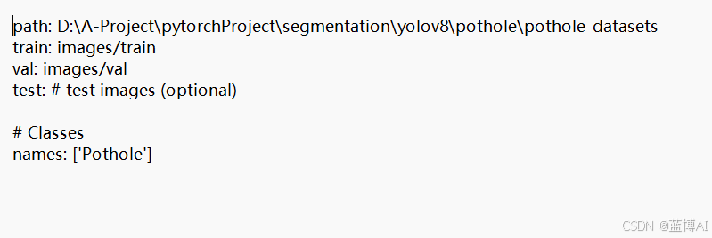 第一步:打开data/data.yaml, 修改train和val的路径为自己数据集的路径