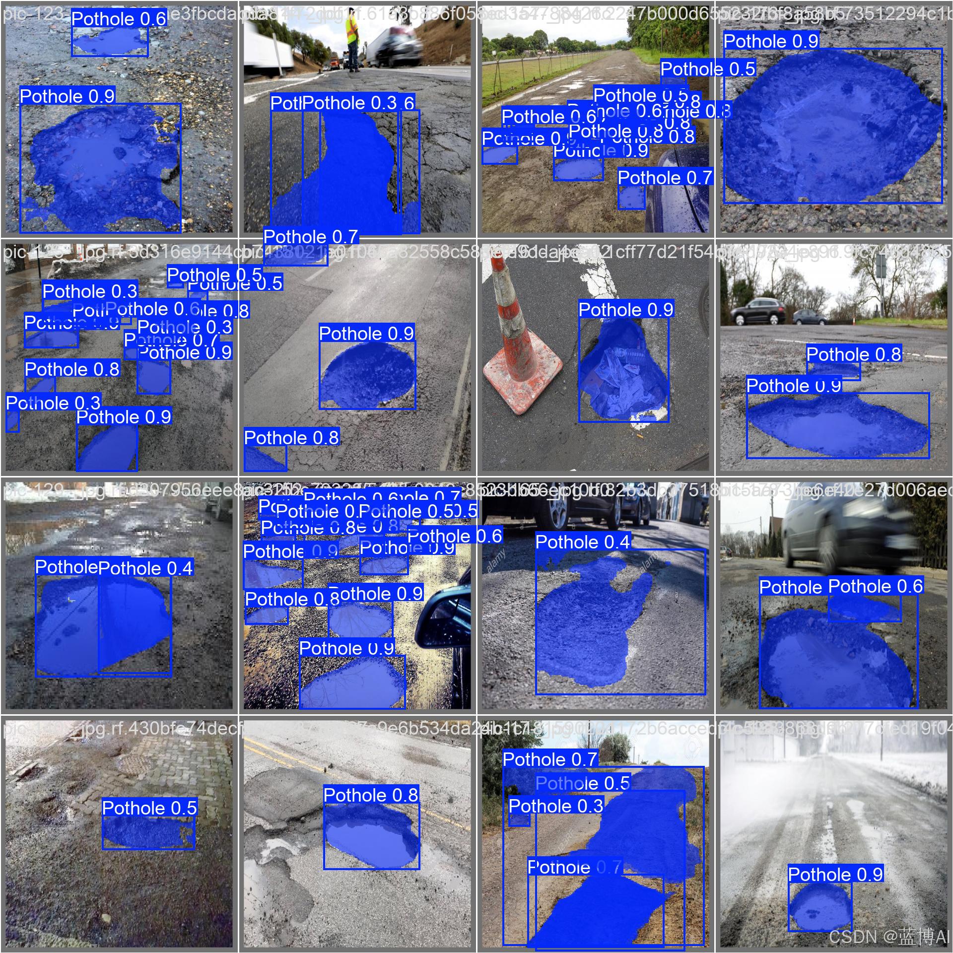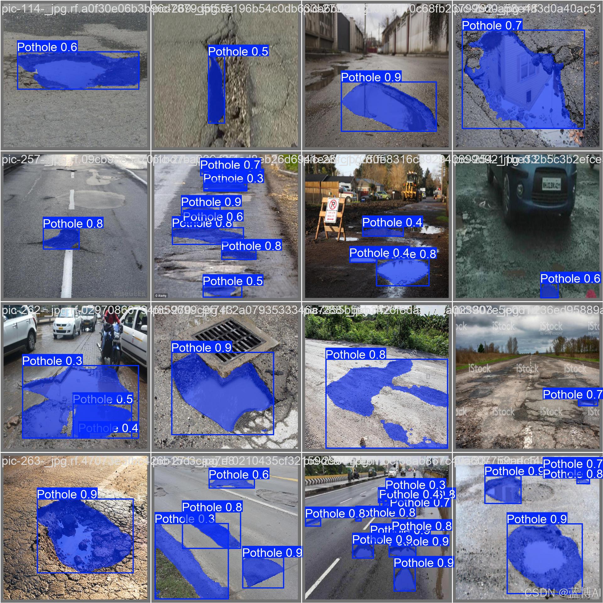 基于yolov8的马路坑洼检测分割系统是在pytorch框架下实现的,这是一个完整的项目,包括代码,数据集,训练好的模型权重,模型训练记录,GUI界面等。