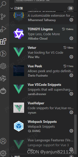 vetur 或 volar插件是一个专门用于开发 Vue.js 项目。它提供了许多有用的功能,包括语法高亮、代码补全、错误检查、格式化、调试等。