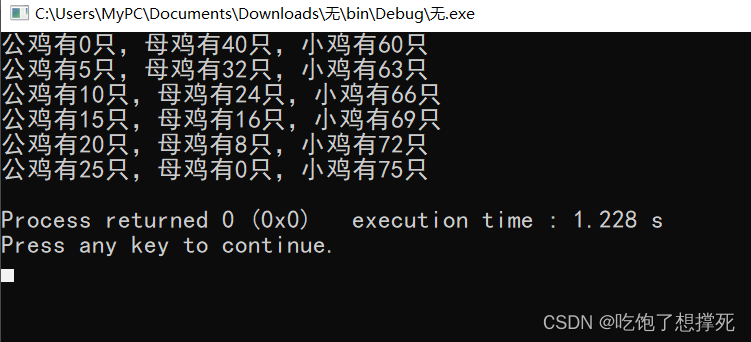 printf("公鸡有%d只,母鸡有%d只,小鸡有%d只\n",i,j,k);