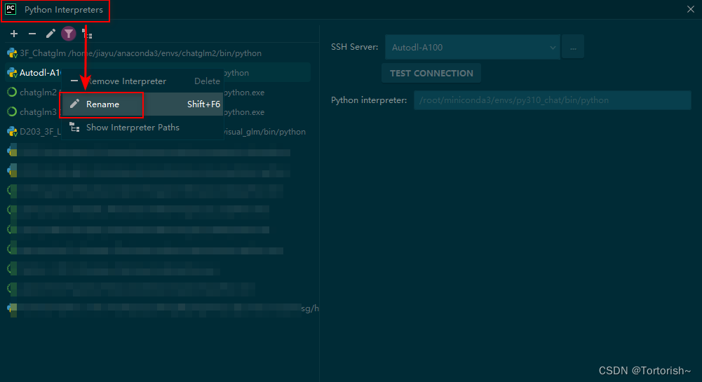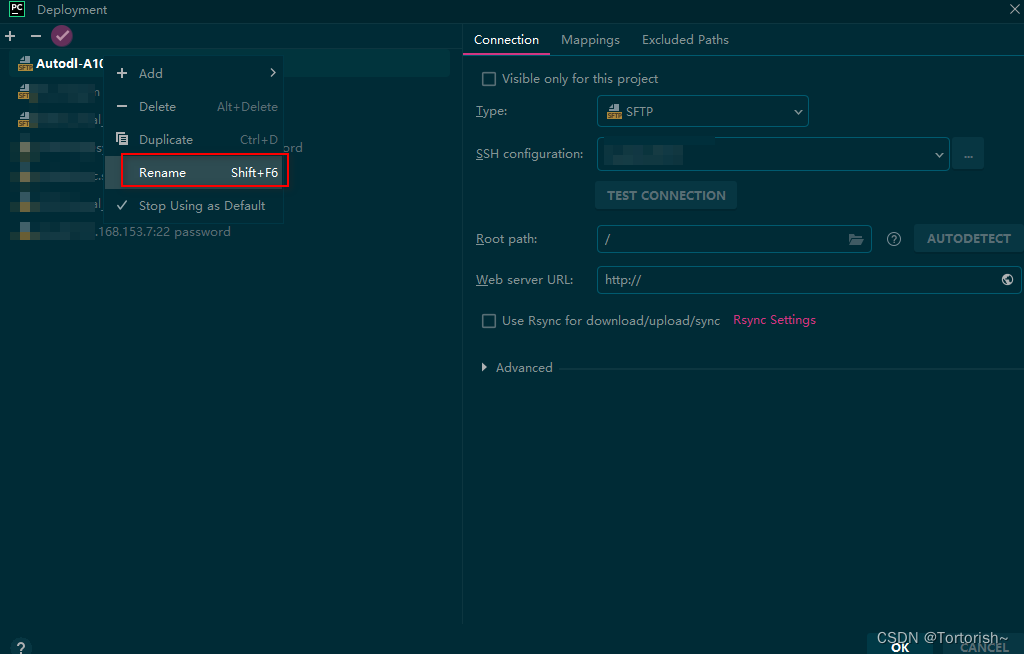 pycharm更改远程服务器的名称(SFTP和命令行)