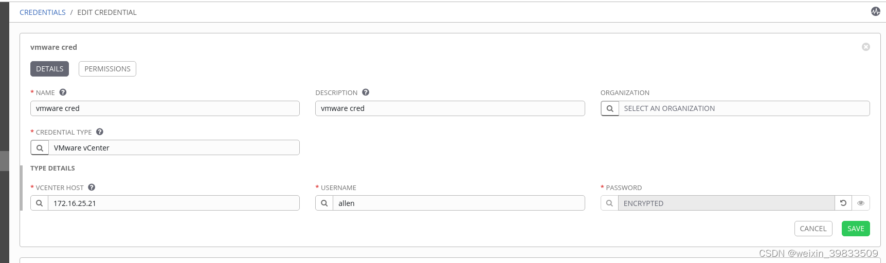 1. 上传vmware 的credential 到tower: