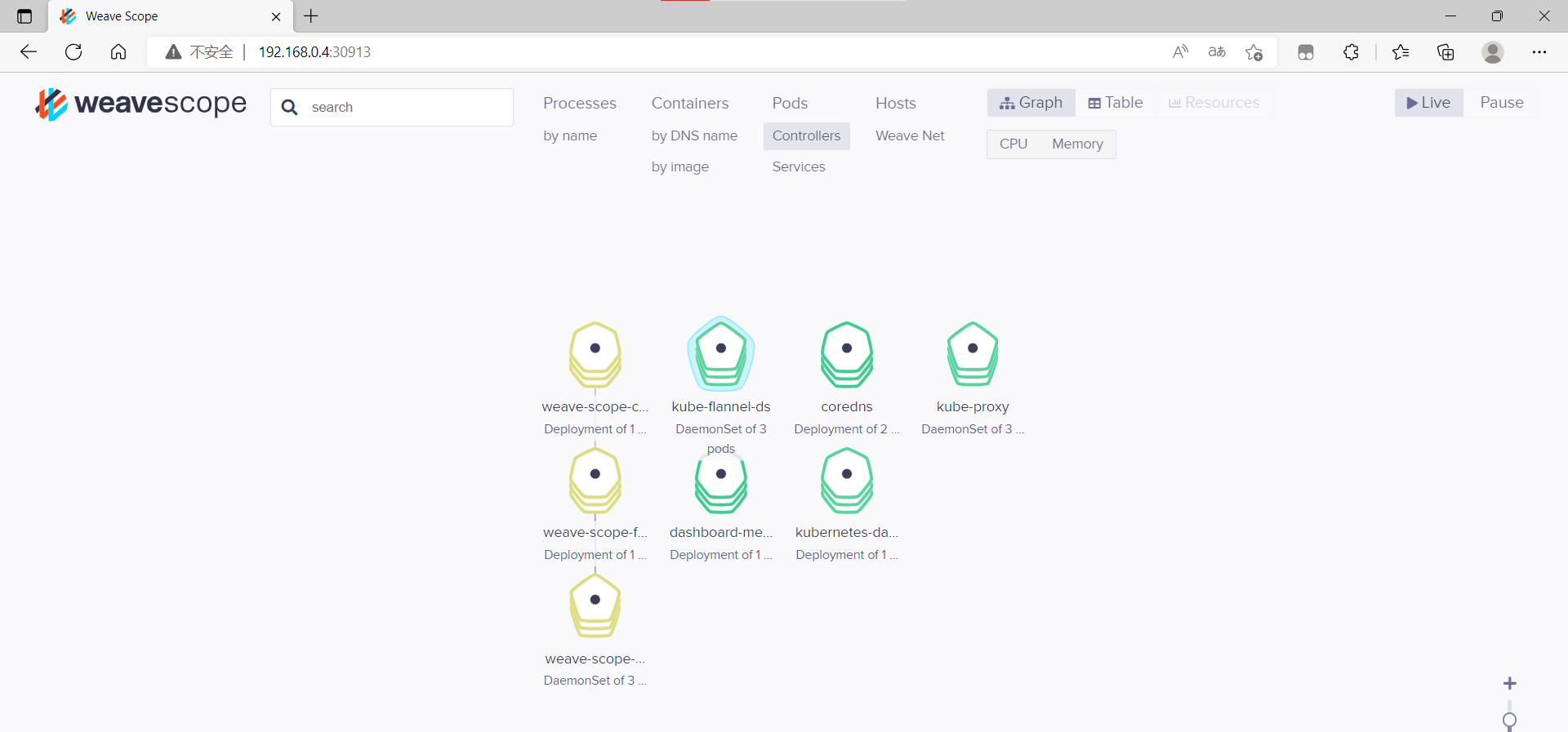 ui-weave-scope NodePort 10.104.164.107 <none> 80:30913/TCP 8m