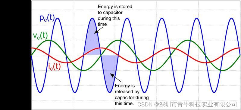 \[P_{c}(t)=v_{c}(t)i_{c}(t) = [ V_{c} cos(\omega t + \theta)] \times C\frac{dv_{c} {dt}\]