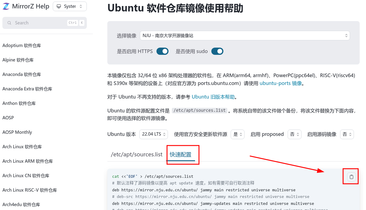链接: Ubuntu 软件仓库镜像使用帮助 - MirrorZ Help