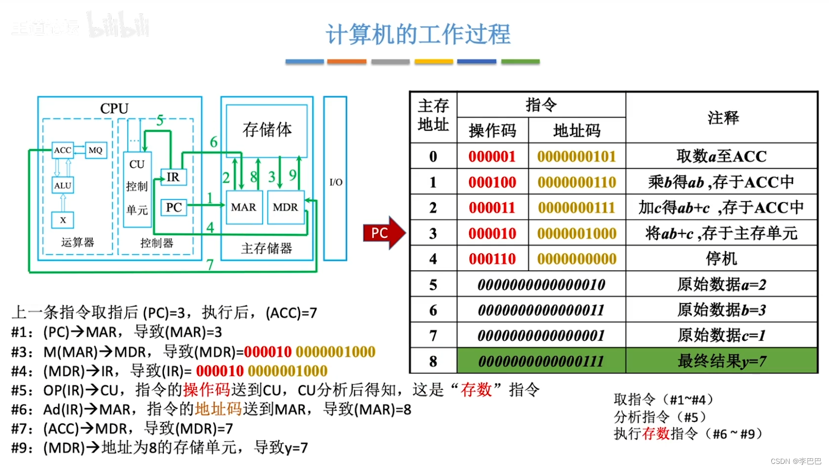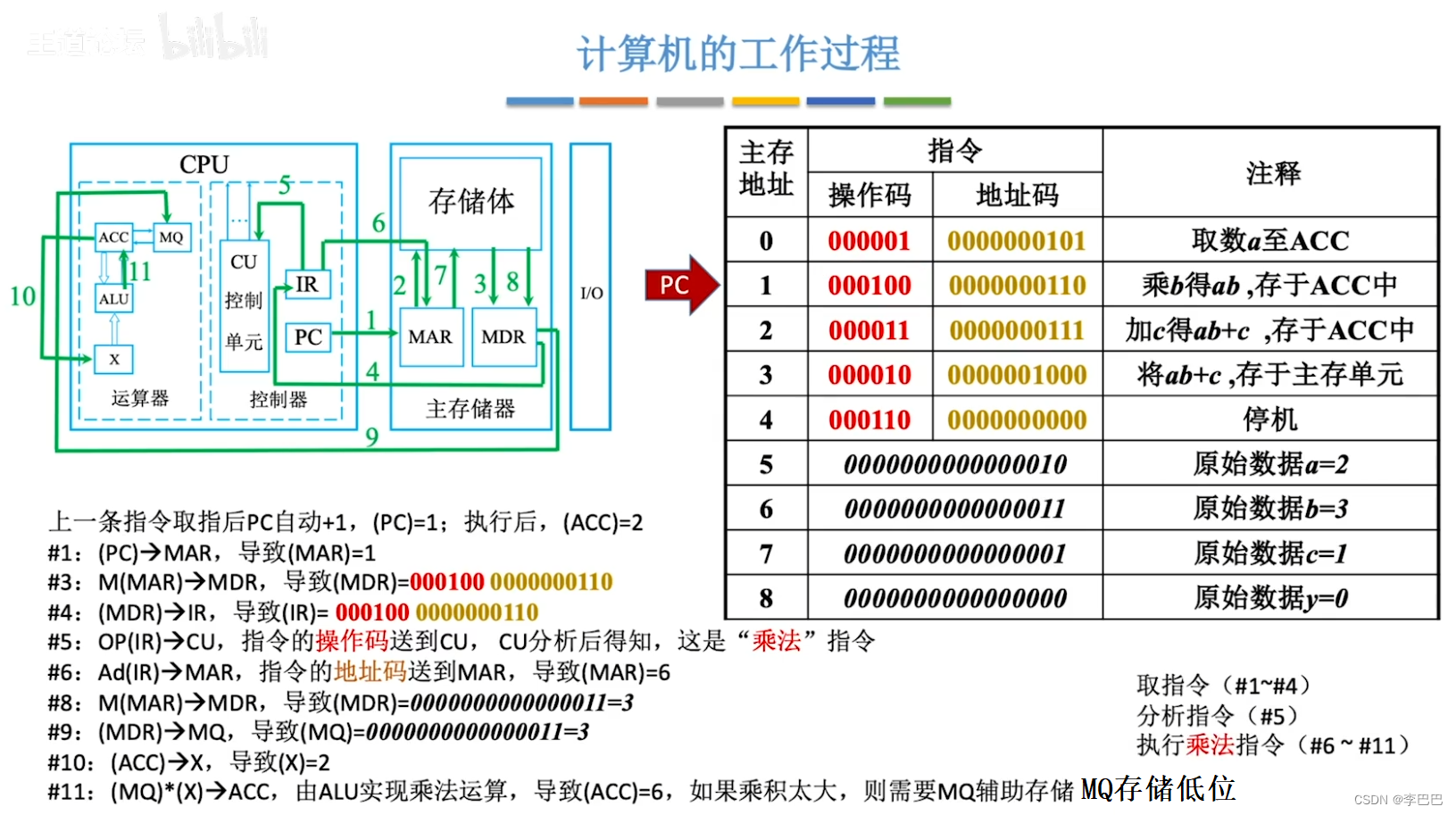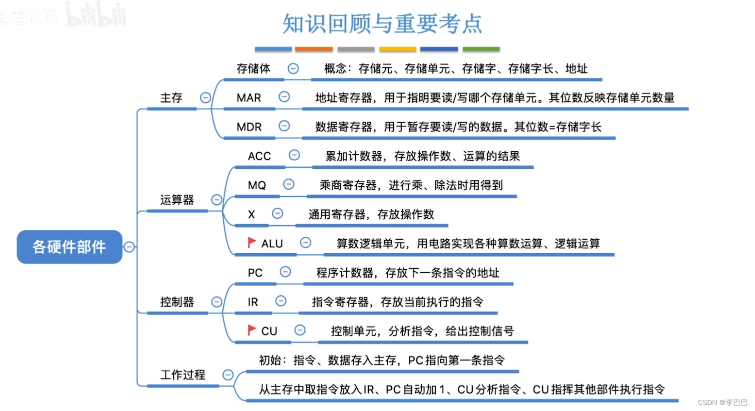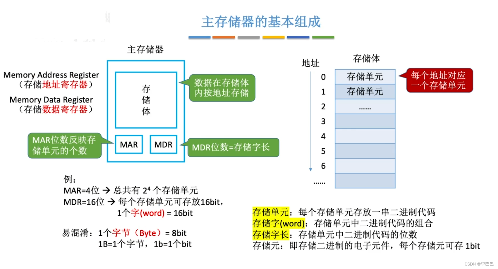 注意:虽然 MAR 和 MDR 属于主存中的内容,但现在绝大多数计算机都将 MAR 和 MDR 集成到了 CPU 中。