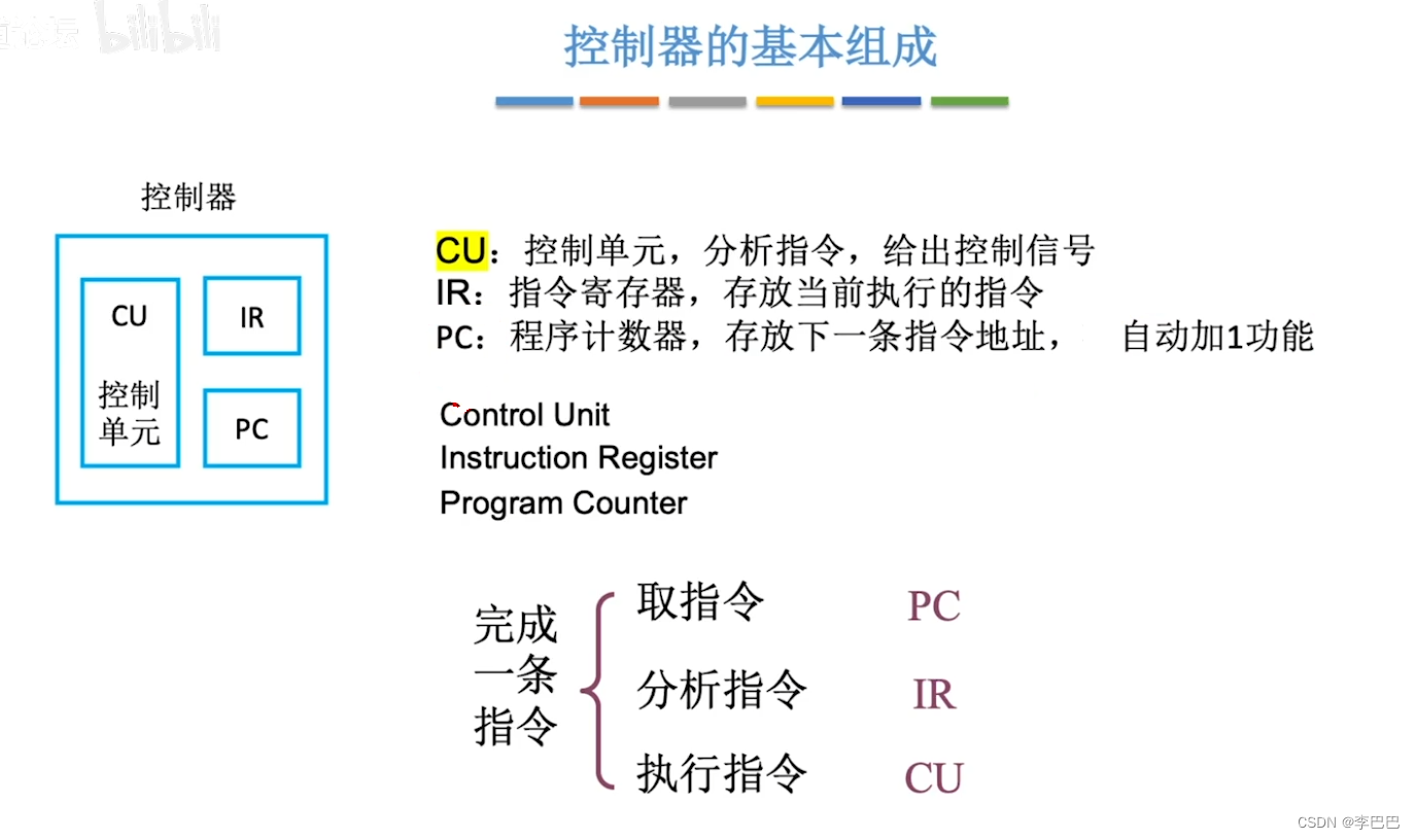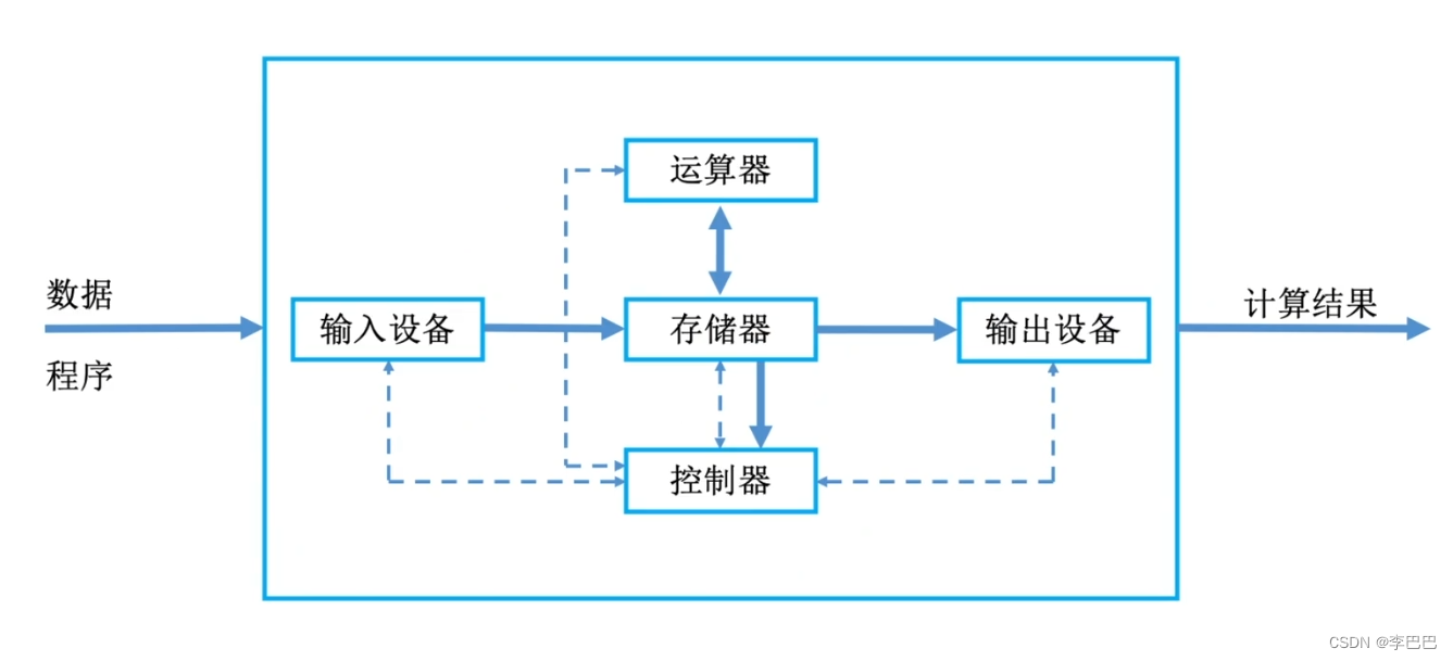 - 辅存储器:又称外存储器,协助主存储器记忆更多的信息,辅助存储器的信息需要导入到主存储器中,才可以被CPU访问