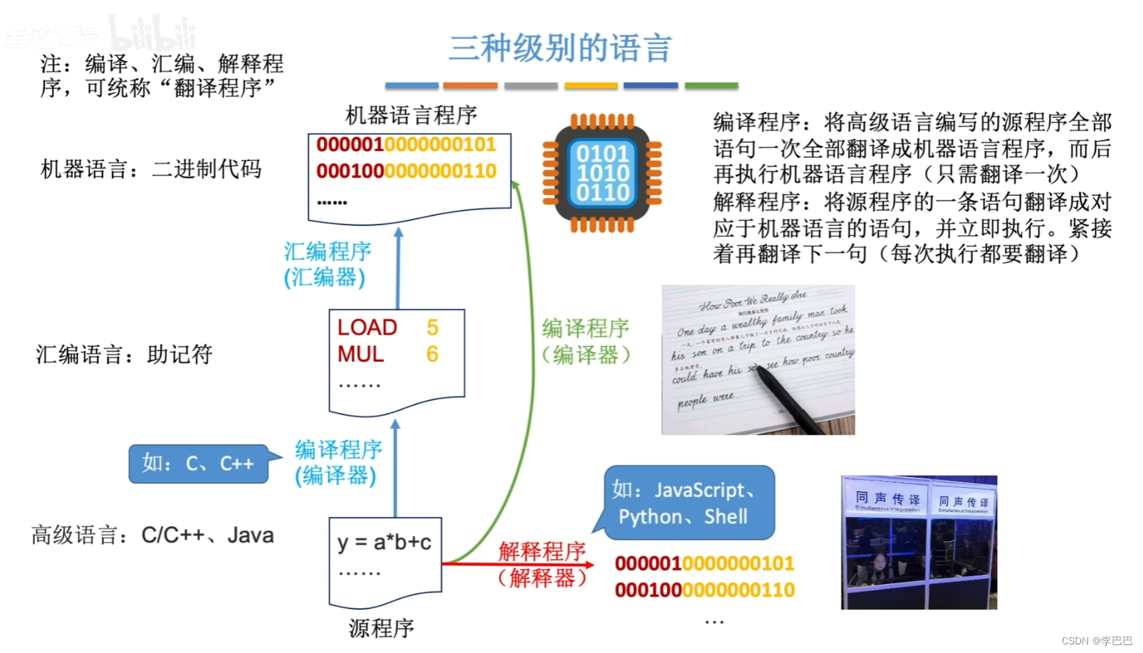 在计算机系统中,软件和硬件在逻辑上是等效的。(即,对于同一个功能,我们既可以用软件来实现,也可以用硬件来实现,只不过用软件实现的成本较低,效率也较低,硬件与之相反。比如:对于乘法运算,可以设计一个专门的硬件电路来实现,也可以用软件的方式,执行多次加法运算来实现。)