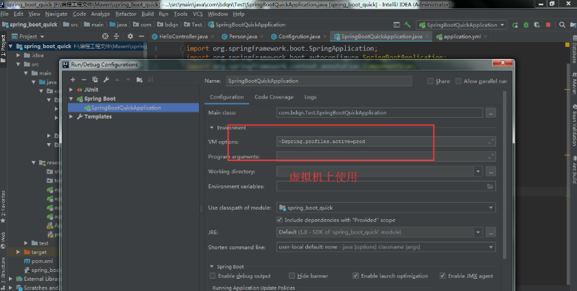 - 命令行参数:最高优先级,使用 -Dkey=value 形式传递给 JVM 的系统属性。可以覆盖其他所有配置源。即idea中启动时设置的 Add VM options