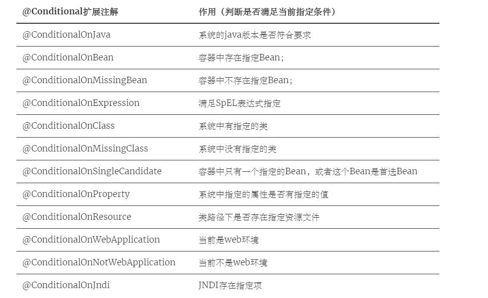 作用:必须是@Conditional指定的条件成立,才给容器中添加组件,配置配里面的所有内容才生效;