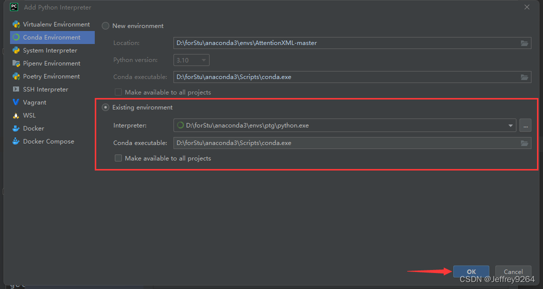 可能还是有些朋友没有安装上,或者其他一些环境因为各种原因安装不上。我这里提供一个我的环境包,不止torch,里面包含了很多东西,3个多g(最下面有详细)。直接下载下来解压放在Anaconda的envs文件夹下,再在项目中引入即可。打开pycharm,打开你的项目文件,左上角file->settings。选择envs目录下环境包中的python.exe,然后OK。环境包正在上传,上传好了我会把链接放