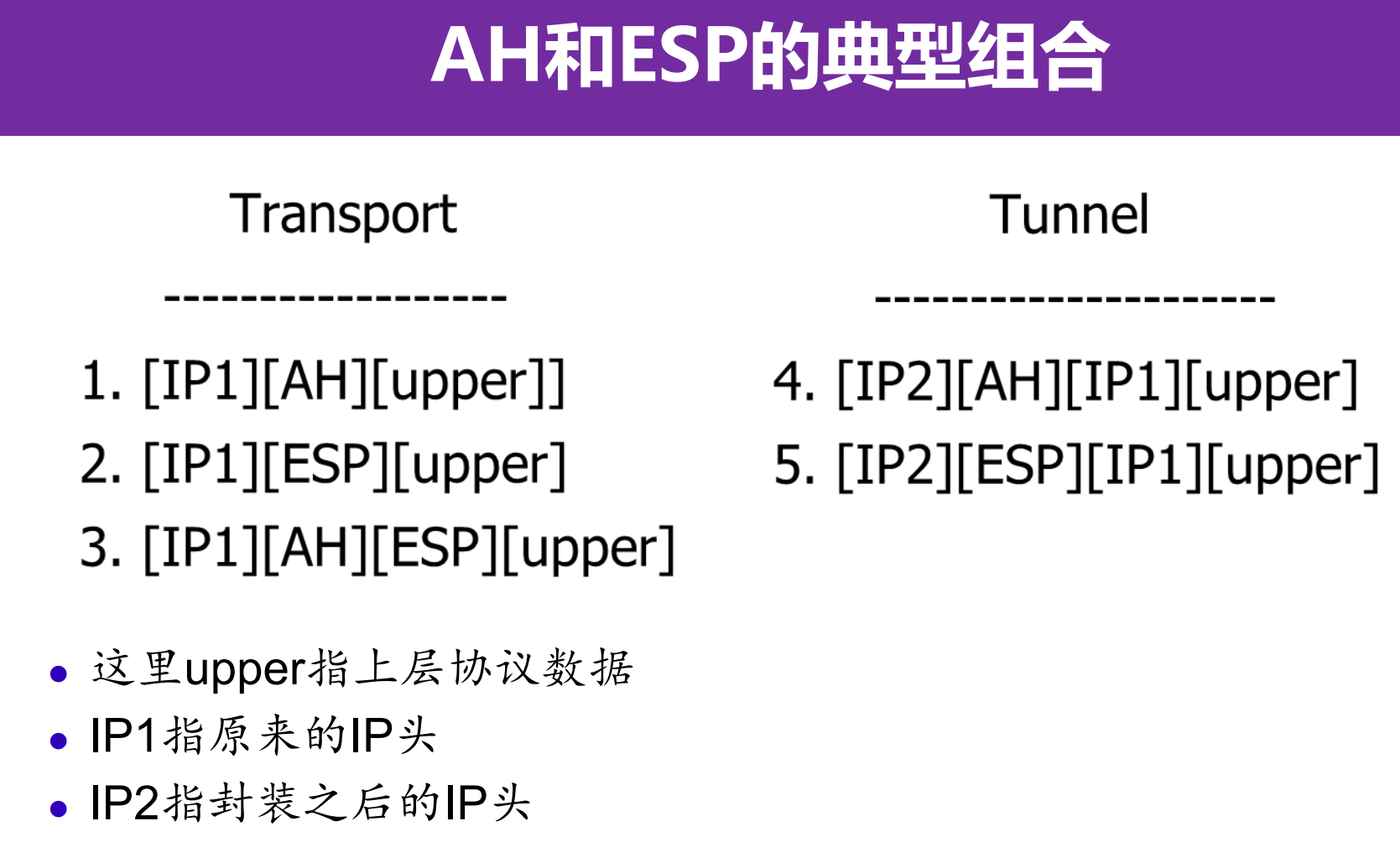 传输邻接:在不使用隧道的情况下,对一个IP包使用多个安全协议;组合AH和ESP的方法仅允许一级组合。