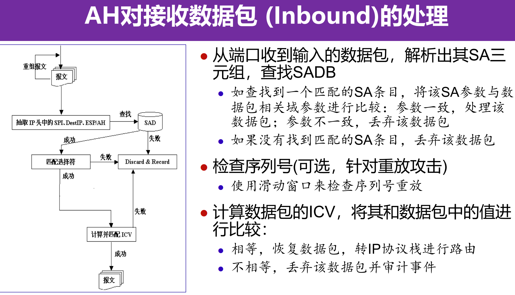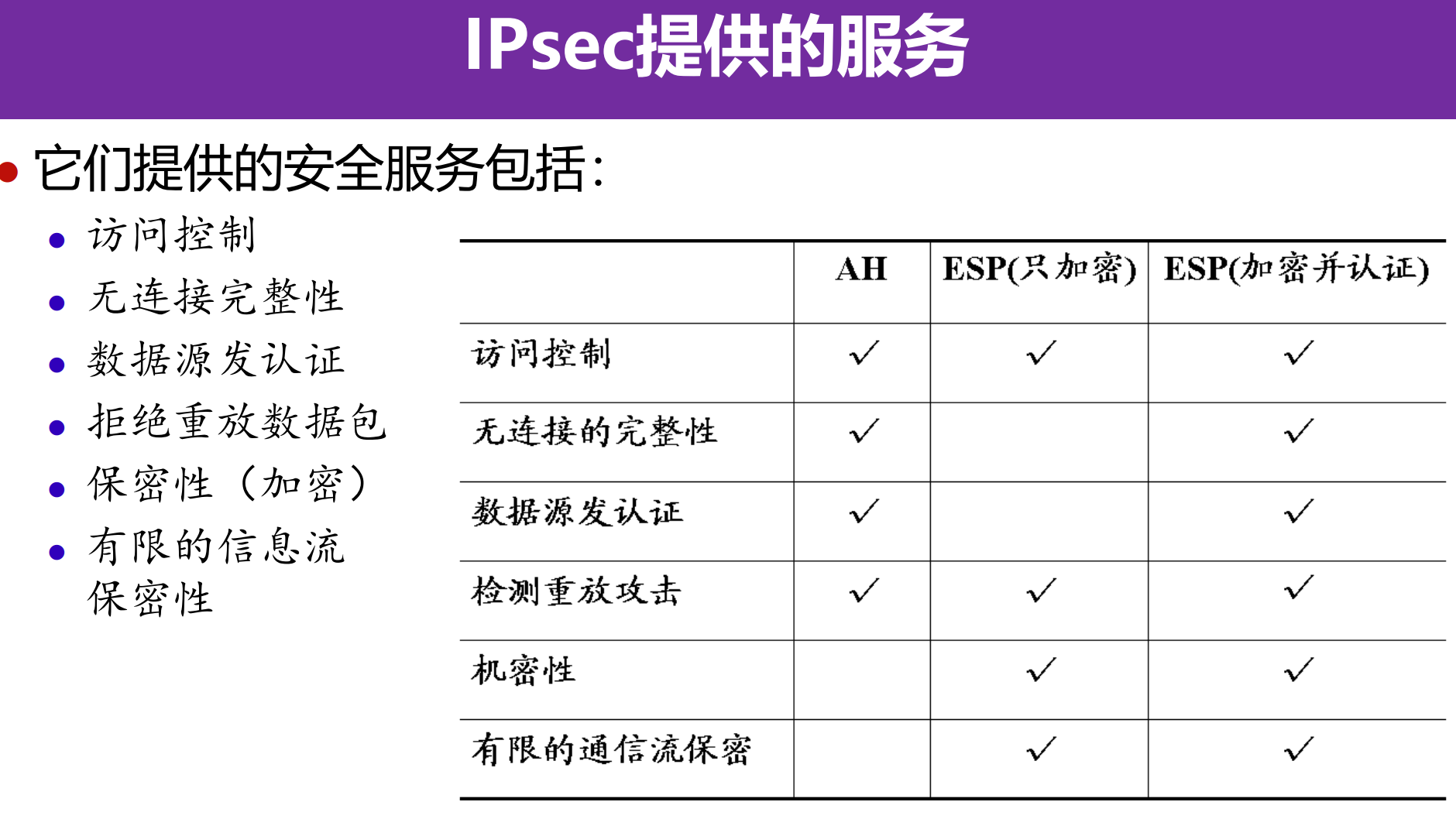 ESP加密和认证(可选)IP载荷,不包括报头;传输模式的AH认证IP载荷和报头的选中部分;