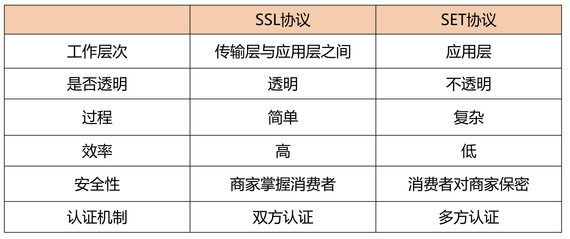 SET:保密、真实、隐私、实时。机密性,完整性,用户认证,商家认证。