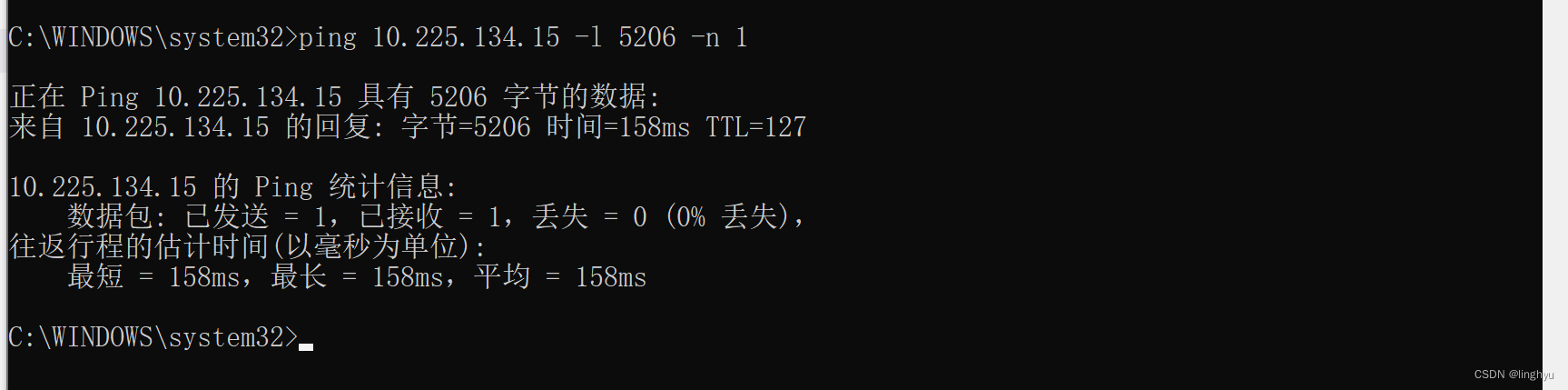 在这里我们设计使用ping 10.225.134.15 -l 5206 -n 1