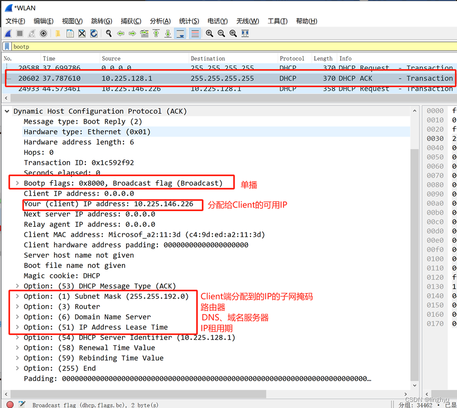 服务器用DHCP ACK包对DHCP Repuest进行响应回复