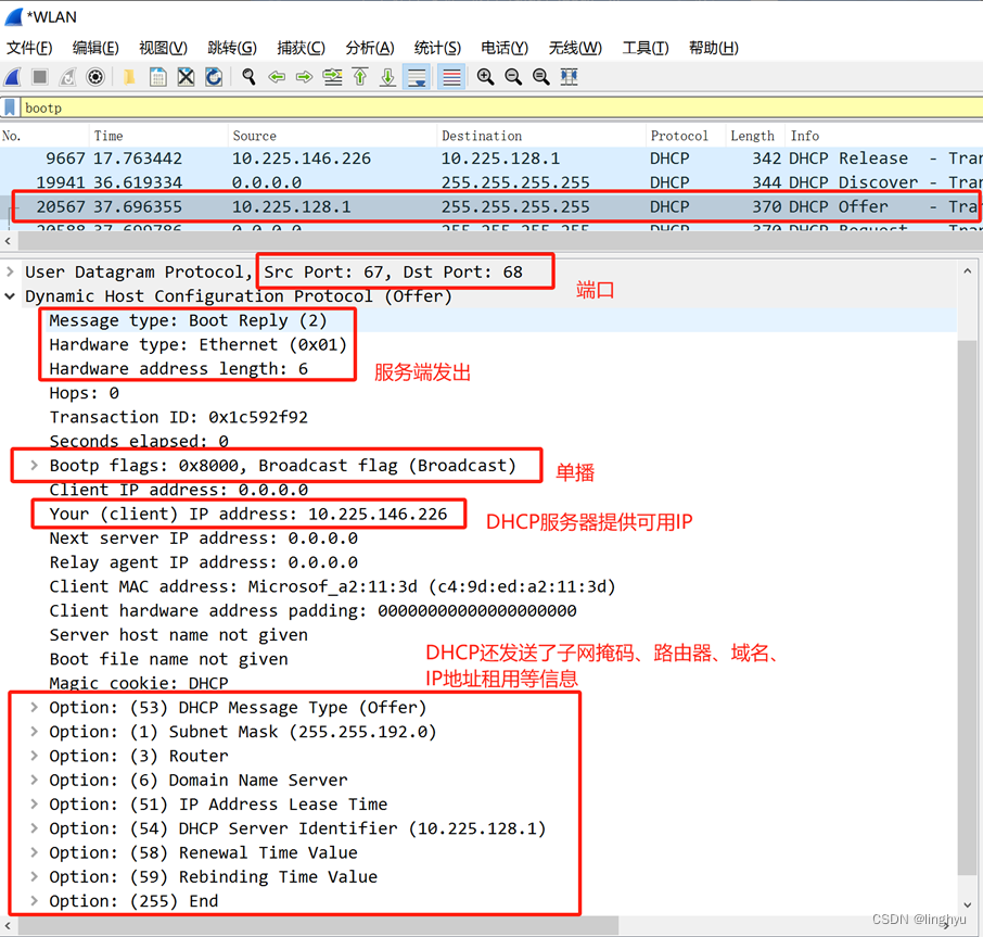 当DHCP服务器收到一条DHCP Discover数据包时,用一个DHCP Offerr包给予客户端响应。