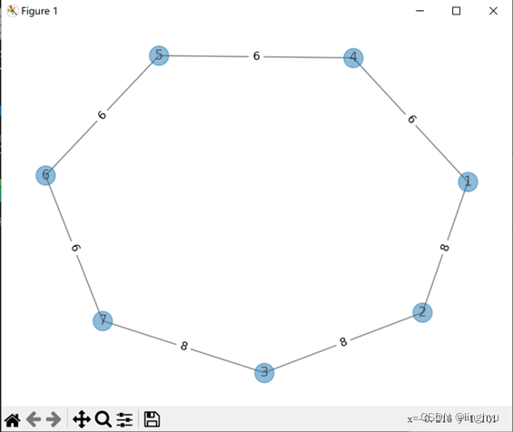 G2.add_weighted_edges_from([(1,2,8),(1,4,6),(2,3,8),(3,7,8),