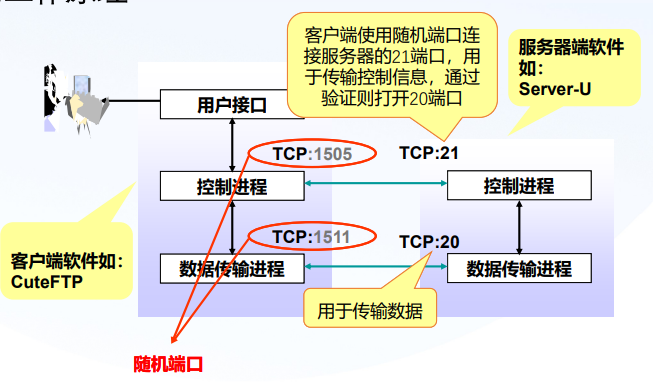 - FTP File Transfer Protocol-文件传输协议 用于传输文件 端口号为TCP的21和20
