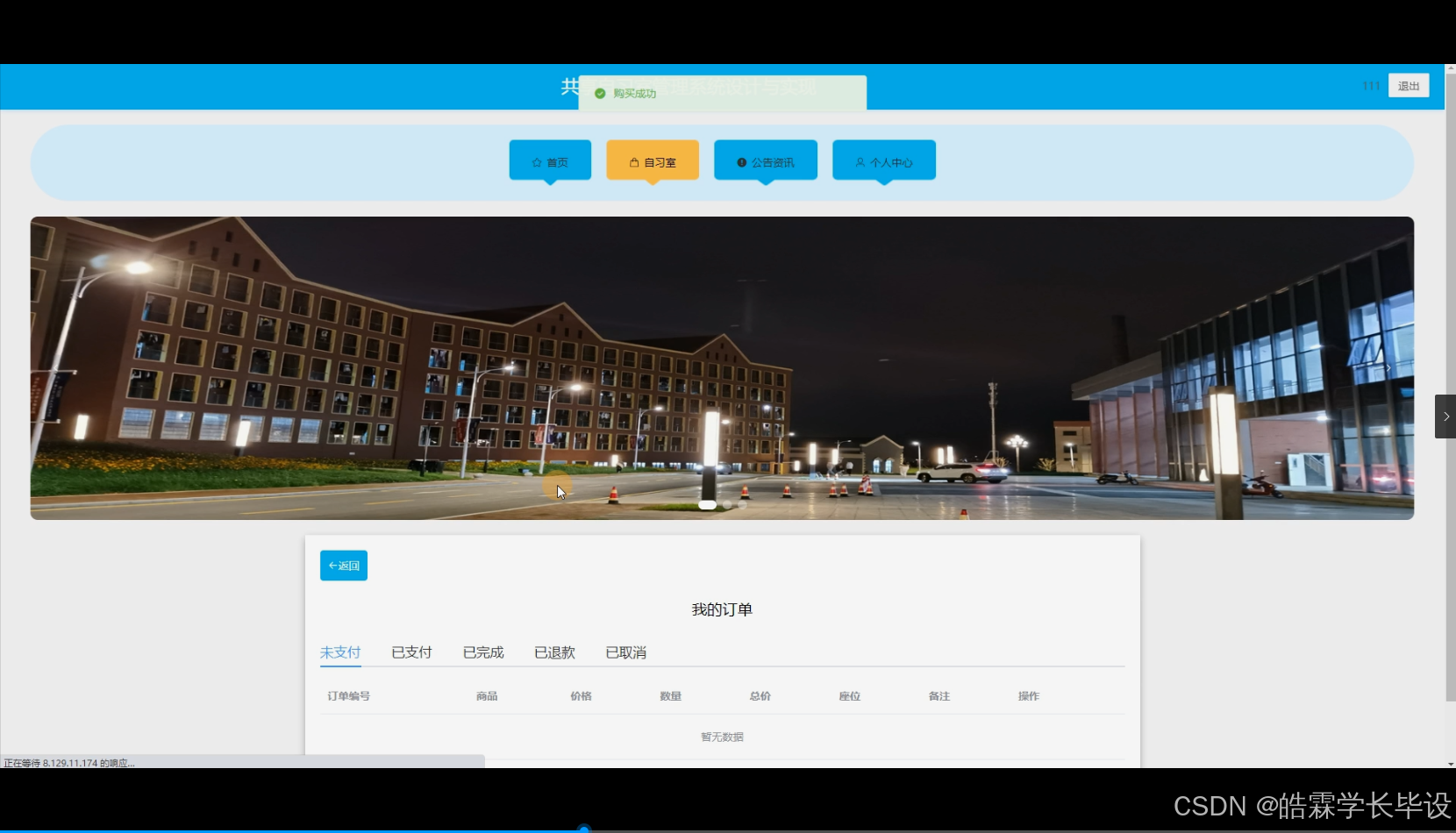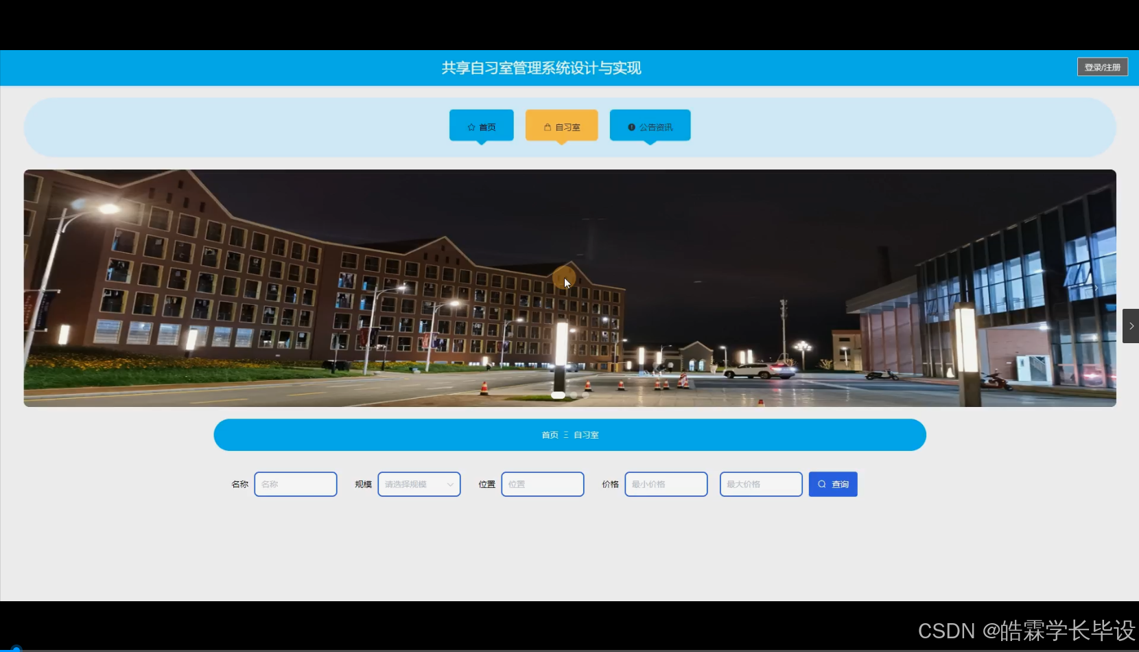 - 自习室查询与预约:用户可以根据地理位置、自习室设施等条件查询合适的自习室,并进行预约操作。