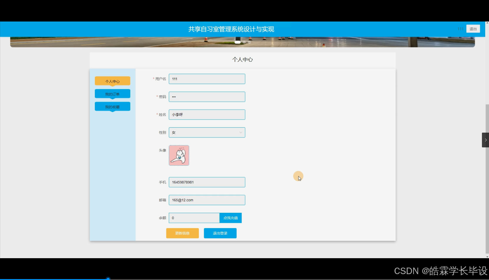 - 个人信息管理:用户可以修改个人信息,查看自己的预约记录、消费记录等。