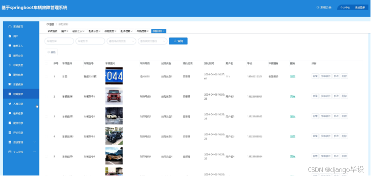 计算机毕业设计Springboot基于车辆故障管理系统 基于Spring Boot的车辆故障诊断与管理系统设计 Spring Boot框架下的车辆故障信息管理平台开发