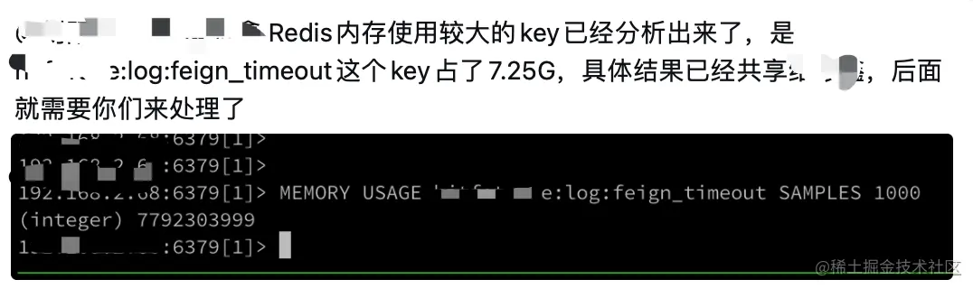 然后问了下运维同事,帮忙看看redis有什么特殊的情况,这一看就有结果了:redis内存基本快满了,而且没有做预警,大家都不知道。