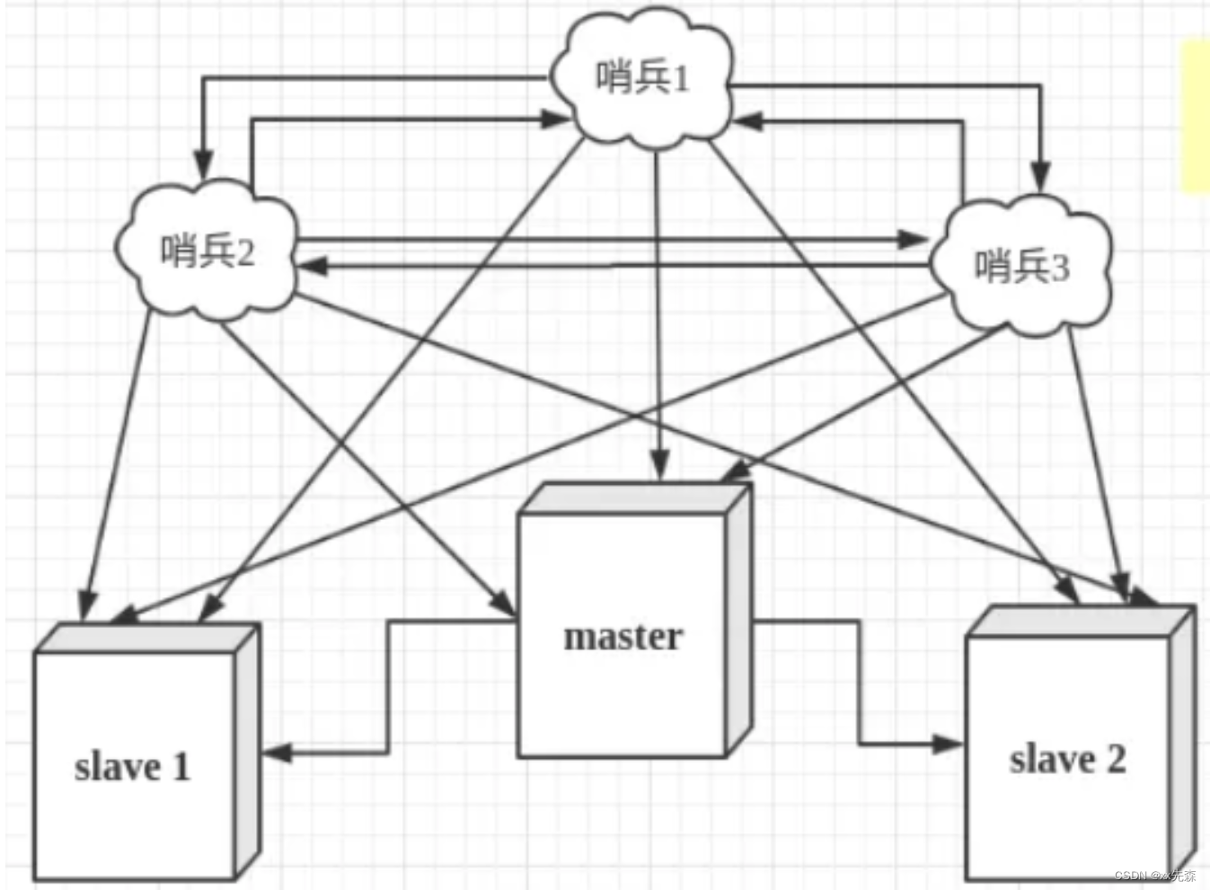 Sentinel(哨兵)是Redis的高可用性解决方案:由一个或多个Sentinel实例组成的Sentinel系统可以监视任意多个主服务器,以及这些主服务器属下的所有从服务器,并在被监视的主服务器进入下线状态时,自动将下线主服务器属下的某个从服务器升级为新的主服务器。