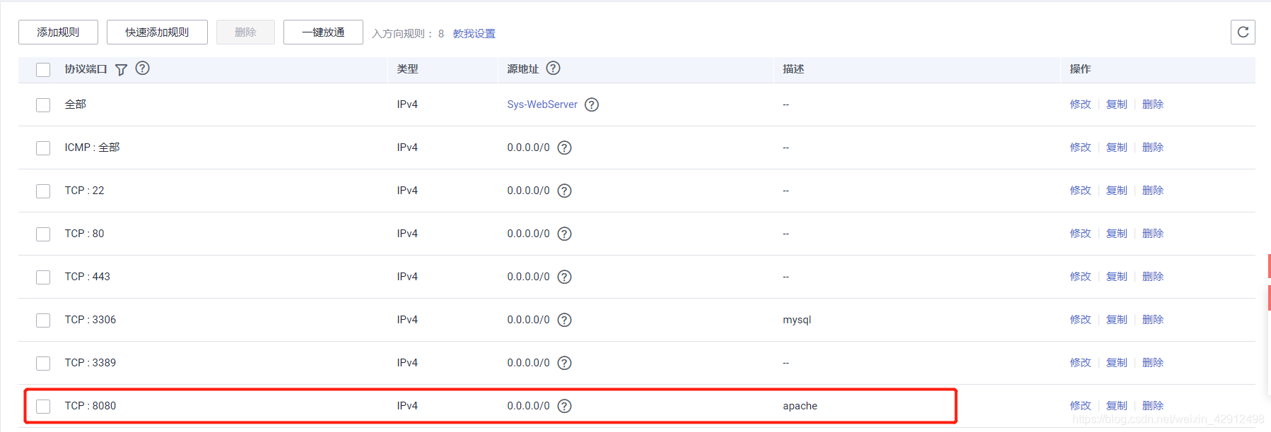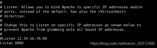 2)修改配置文件,将监听端口改为8080,重启apache服务。通过ip访问测试。