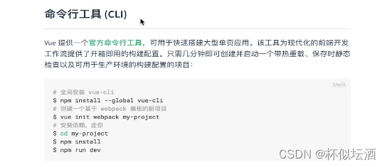 Vue 提供了脚手架工具 vue-cli ,用于快速搭建大型Vue项目!