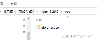 2. 在nginx-1.26.0文件夹下创建web文件夹,继续在web文件夹下创建abcd.test.cn文件夹(文件夹的名字就叫abcd.test.cn);