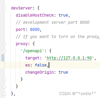 3. 配置前端代理;(注意端口是90,与下文后端端口 和 nginx.conf中后端配置端口 呼应)