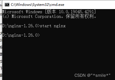 10. 在nginx-1.26.0文件夹下,通过 start nginx 启动nginx;(停止nginx命令为nginx -s stop)