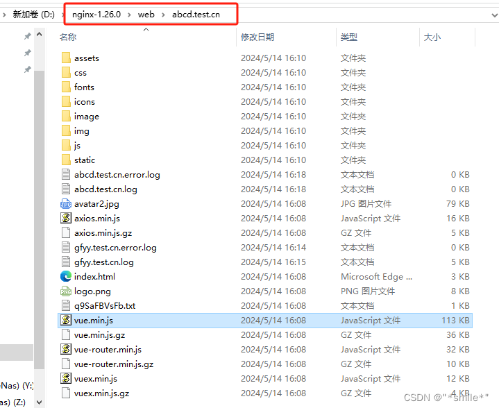 5. 将dist文件夹中的东西复制,全部放在 abcd.test.cn文件夹中;