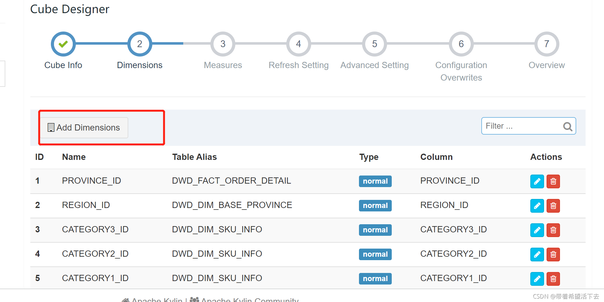 方案一:在hive中创建维度表的临时表,该临时表中只存放维度表最新的一份完整的数据,在kylin中创建模型时选择该临时表作为维度表。