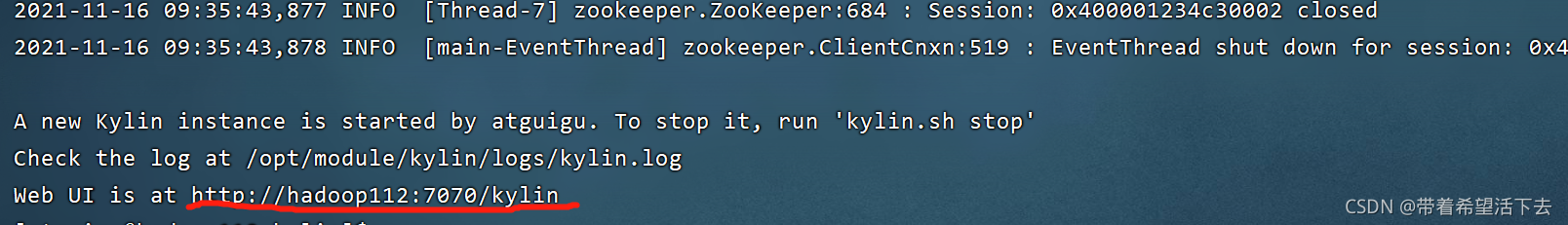 (1)启动Kylin之前,需先启动Hadoop(hdfs,yarn,jobhistoryserver)、Zookeeper、Hbase