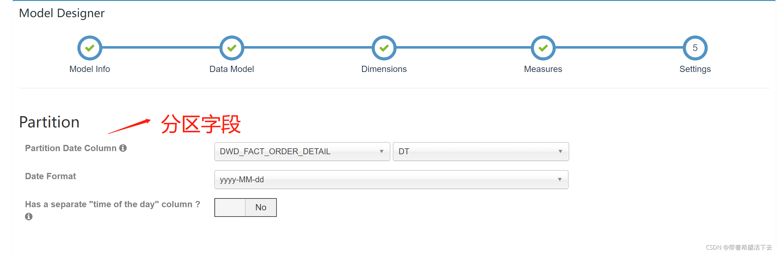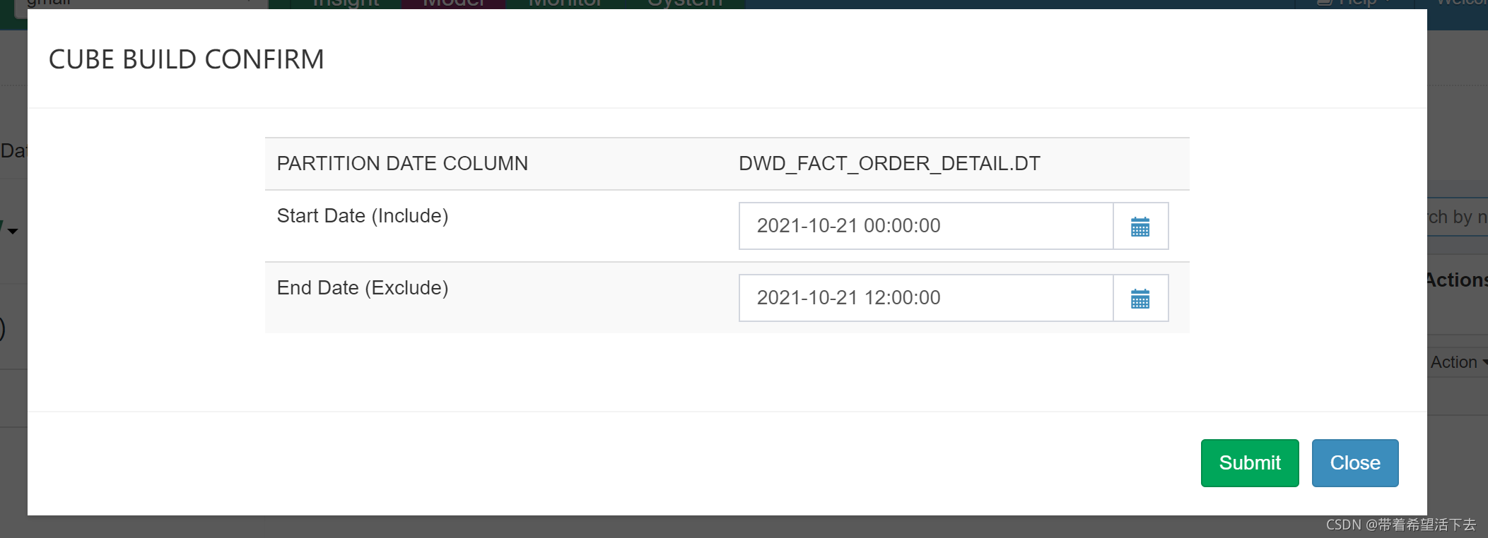 指定事实表分区字段(仅支持时间分区),点击Save按钮,model创建完毕